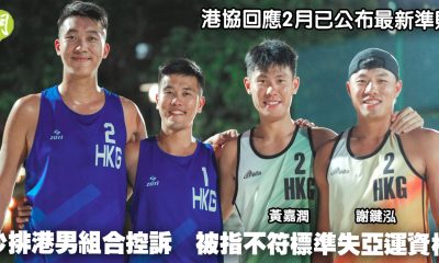 香港沙灘排球隊男將謝鍵泓/黃嘉潤因被指不合奧委會標準...