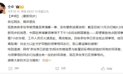 中國駐泰國大使館通報,一名中國公民11月29日在泰柬...