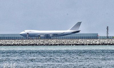 一架貨機今早緊急折返香港國際機場降落時爆胎而停留於機...