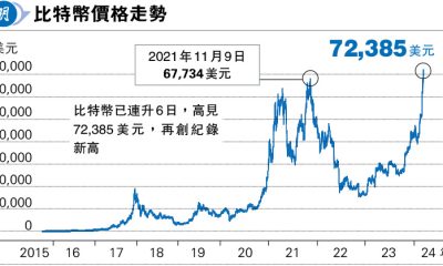 【明報專訊】比特幣價格逾兩年來首次突破6萬美元大關,...