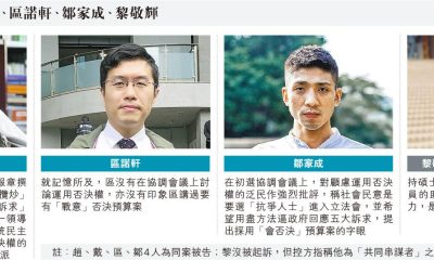 【明報專訊】根據控方指控,不認罪的鄒家成和認罪的梁晃...