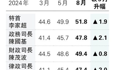 【明報專訊】中大香港亞太研究所噚日公布政府最新民望調...