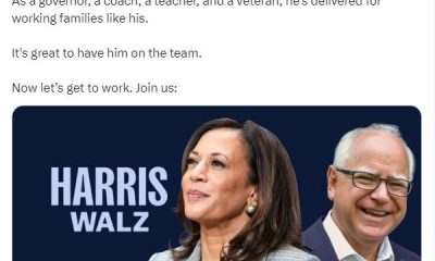 美國民主黨內定總統候選人、現任副總統賀錦麗在社交平台...