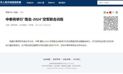 中國國防部今天(14日)通報,根據中泰兩軍年度合作計...