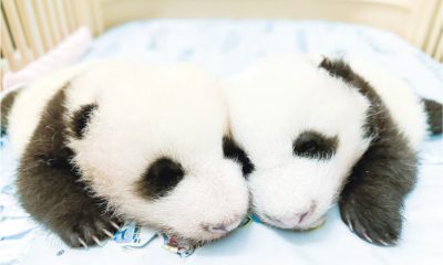 香港海洋公園大熊貓「盈盈」和「樂樂」的龍鳳胎寶寶,今...