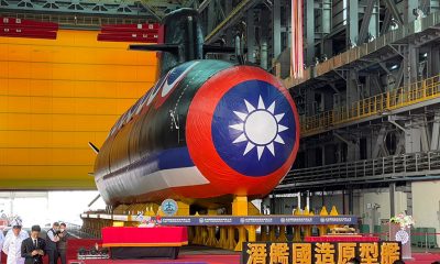 【明報專訊】台灣首艘自製潛艇原型艦「海鯤」今日在台船...