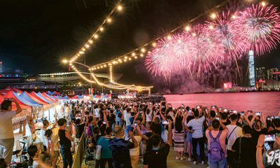 【明報專訊】停辦4年的國慶煙花匯演昨晚9時在維港上演...