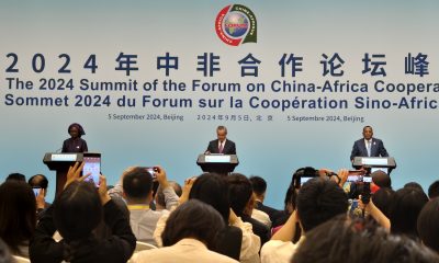 中國外長王毅9月5日在中非合作論壇外長共見記者會上表...