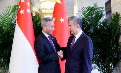 中國外交部長王毅9月9日在北京與到訪的新加坡外長維文...