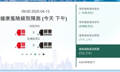 根據環保署空氣質素健康指數網頁,現時一般監測站的健康...