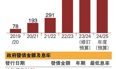 【明報專訊】政府大幅增加發債借錢應對財赤,由去年原本...