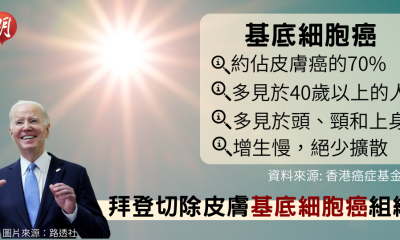 美國總統拜登近日切除胸口皮膚基底細胞癌組織【相關報道...