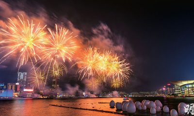 【明報專訊】新春煙花匯演昨晚8時在維港上空上演,警方...
