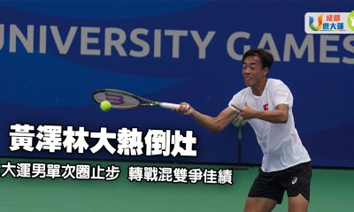 香港網球新星黃澤林今早(31日)在成都舉行的世界大學...