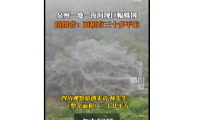 福建泉州有民眾上載影片,稱在當地發現一幅巨型蜘蛛網,...