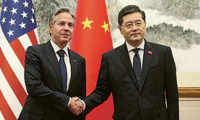 國務委員兼外長秦剛今(14日)與美國國務卿布林肯通電...