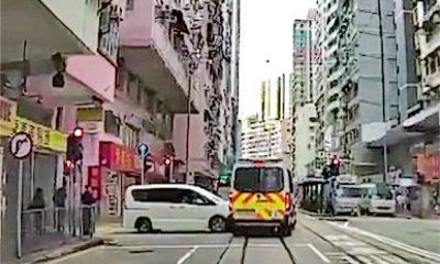 【明報專訊】筲箕灣昨發生交通意外,一輛警車駛至交界位...