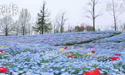 上海辰山植物園近日繁花盛放,園內的紫藤花樹、喜林草(...