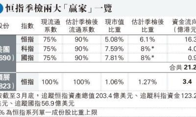 【明報專訊】恒指公司日前宣布於5月12日公布季度檢討...