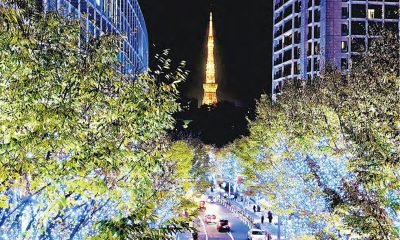 聖誕節(25日)將近,日本東京多處已亮起聖誕燈飾,六...
