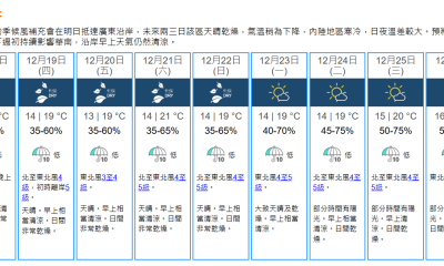 下周踏入聖誕佳節,天文台今(17日)表示,預計聖誕期...