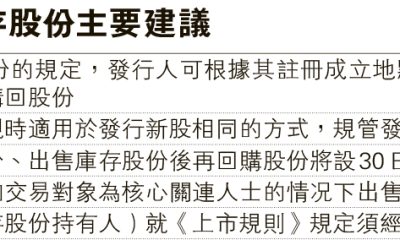 【明報專訊】港交所(0388)刊發有關庫存股份的《上...
