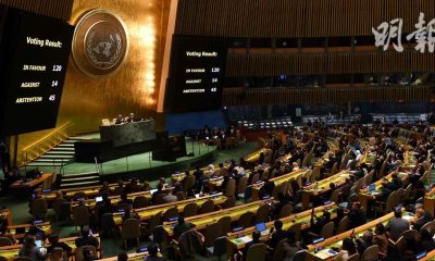 【明報專訊】聯合國大會緊急特別會議前日(27日)大比...
