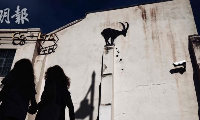 英國著名塗鴉大師Banksy於倫敦西南部一建築物創作...