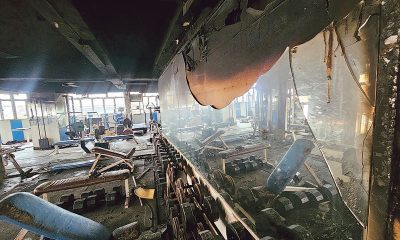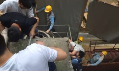 華豐大廈日前發生三級火,附近地盤數名工友昨日協助部分...