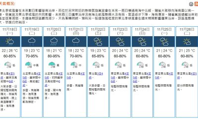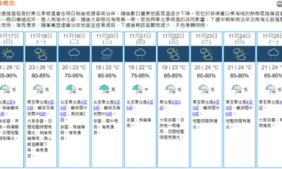 【23:00】天文台表示,按照最新預測,萬宜會於周二...