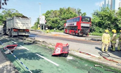 【明報專訊】一輛重型泥頭車,昨午駛至屯門公路支路近藍...
