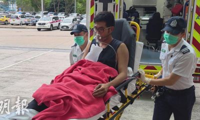 【明報專訊】一名男工昨晨在上水宣道小學維修冷氣期間懷...
