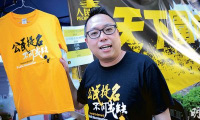 【明報專訊】人民力量前副主席譚得志(快必)在街站發表...