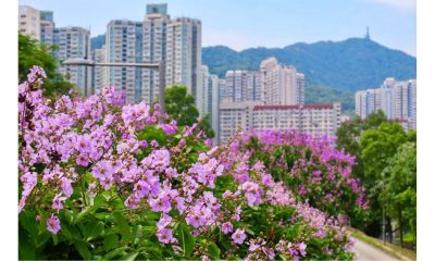 大花紫薇近日在本港多區陸續盛開,紫色花朵猶如彩帶掛在...