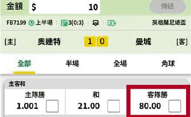 馬會足智彩發生「開錯盤」事件。昨奧連特對曼城英格蘭足...