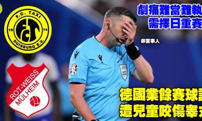 德國日前在一場業餘足球比賽發生罕見事件,球證賽前檢查...