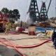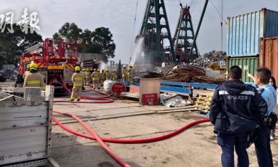 今早10時半,一艘躉船在屯門三聖灣避風塘起火,冒出大...