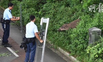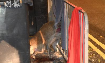 【明報專訊】跑馬地有一頭野豬疑通過升降機闖進一個建築...