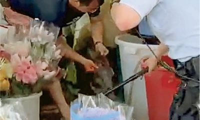 【明報專訊】旺角花墟昨早有約1.2米長野豬闖入花店,...