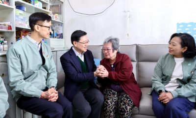 特首李家超今午(25日)到何文田愛民邨,期間探訪兩戶...