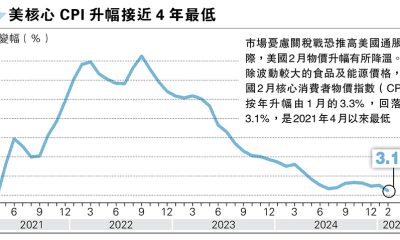 【明報專訊】美國通脹有所降溫,緩和市場對關稅戰恐推高...