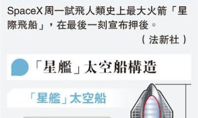 【明報專訊】美國富豪馬斯克旗下太空科技公司Space...
