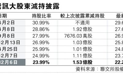 【明報專訊】騰訊(0700)南非大股東Naspers...