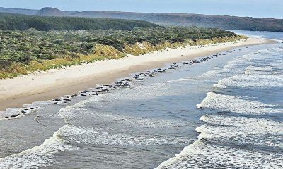 【明報專訊】澳洲塔斯曼尼亞州西岸海灘昨有230條領航...
