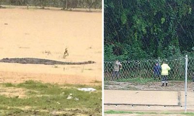 【19:47更新】鱷魚長約2米,其後潛進空地旁的水坑...