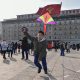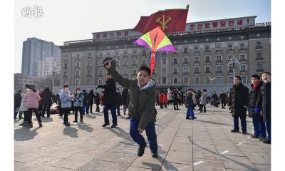 朝鮮首都平壤金日成廣場上,一群孩童於大年初一(10日...