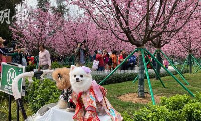 東涌赤鱲角機場櫻花園櫻花近日綻放,蝴蝶在花間飛舞,逾...
