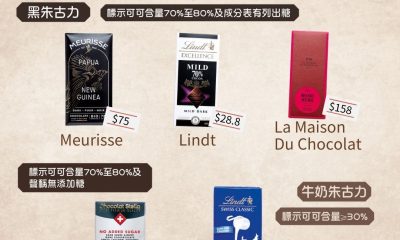 朱古力是不少人愛吃的零食,消委會測試市面上20款黑朱...