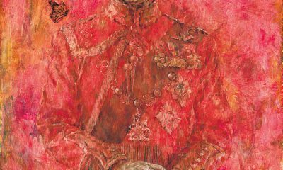 【明報專訊】紅色筆觸恍如浸泡血浴之中,畫中英王查理斯...
