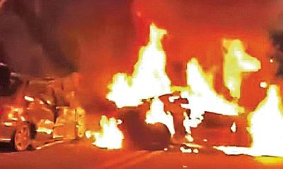 【明報專訊】大埔新娘潭路前晚發生嚴重車禍。一輛豐田跑...